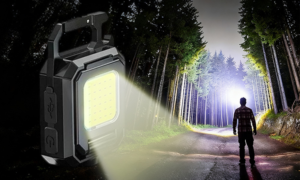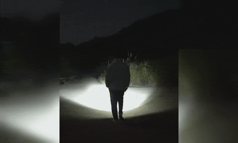 the three high-brightness COB lights flood the path, cutting through the darkness like a spotlight.